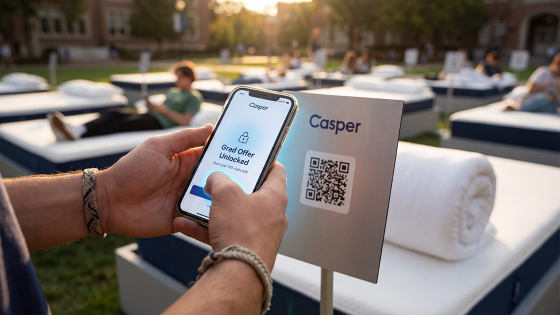 By turning its 100-night trial into a live, physical countdown, Casper reframes mattress-buying as the first—and easiest—decision of adulthood. With a simple scan, students can claim a grad offer and extend the experience into their first apartment—starting their own 100-night trial the moment they move in.