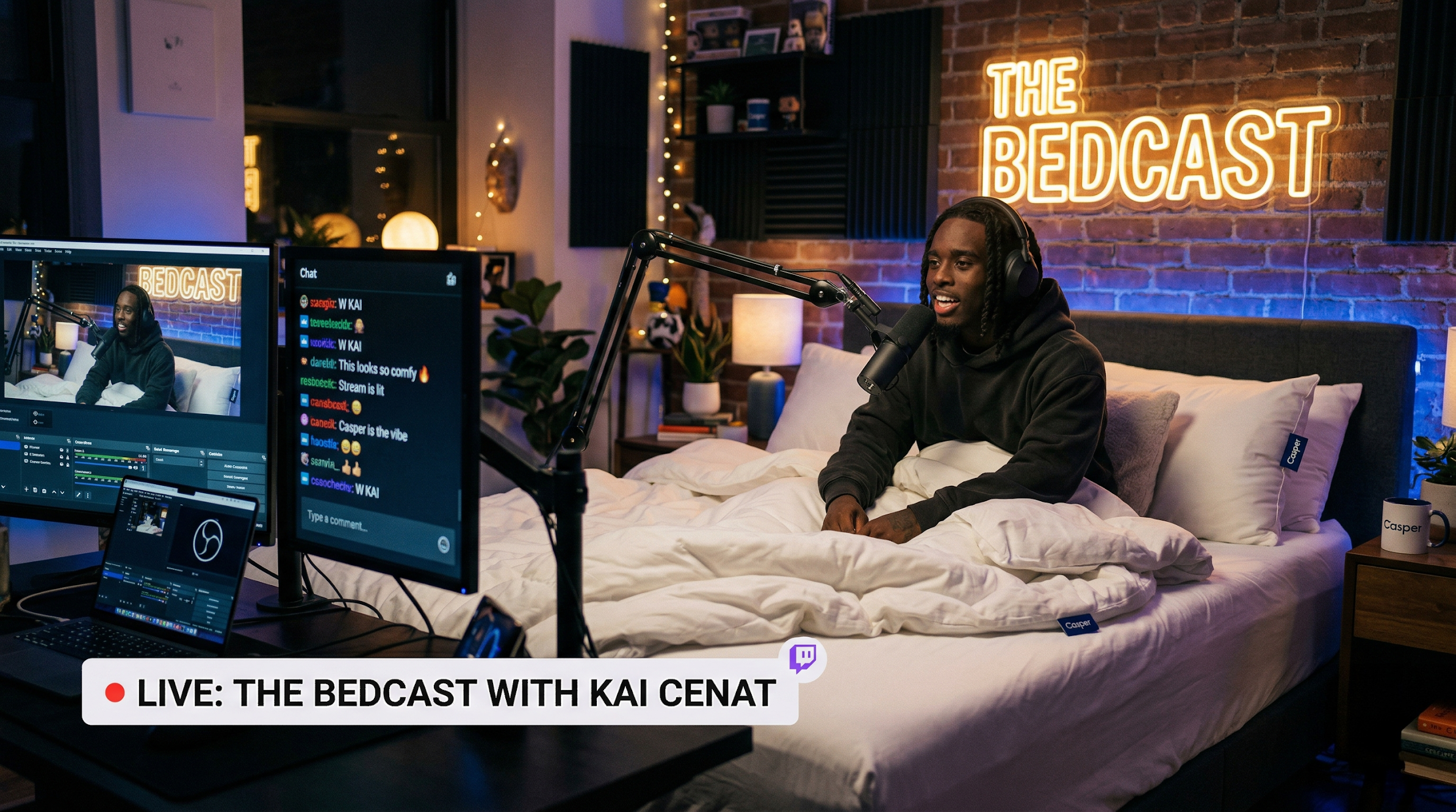 Casper partners with Kai Cenat to create The Bedcast: a live, confession-driven bedtime ritual built for a generation that can’t turn its brain off. Streaming from his Casper bed, Kai hosts a late-night wind-down where fans, creators, and surprise guests call in to share hot takes and anonymous bedtime confessions.